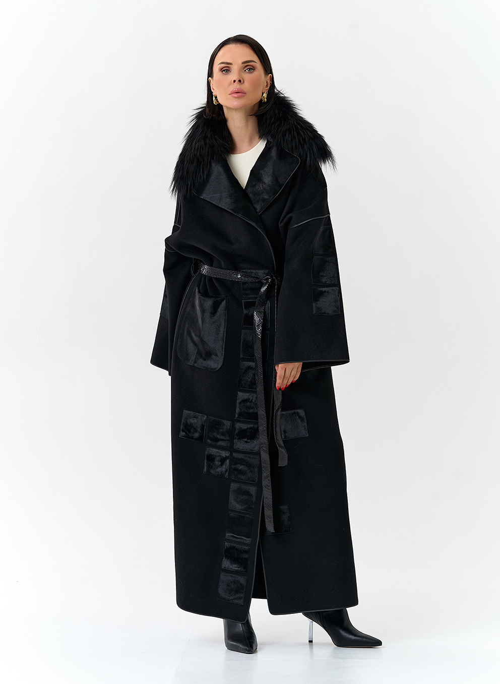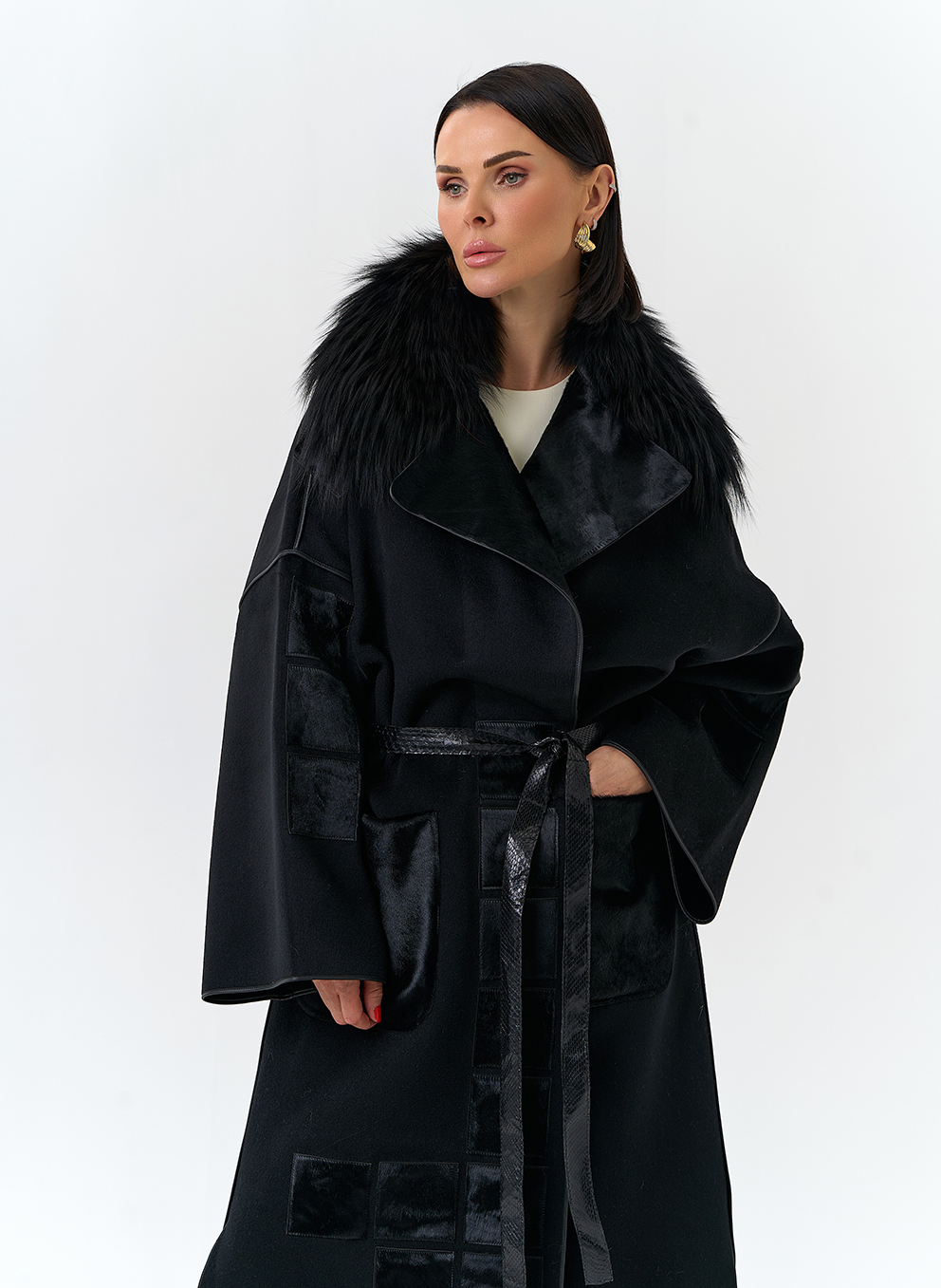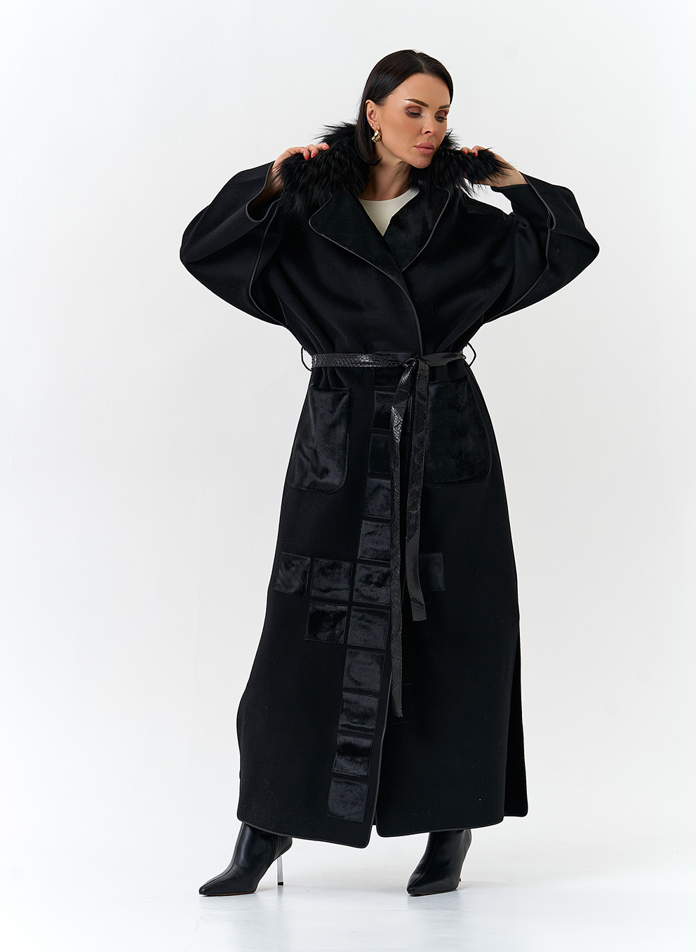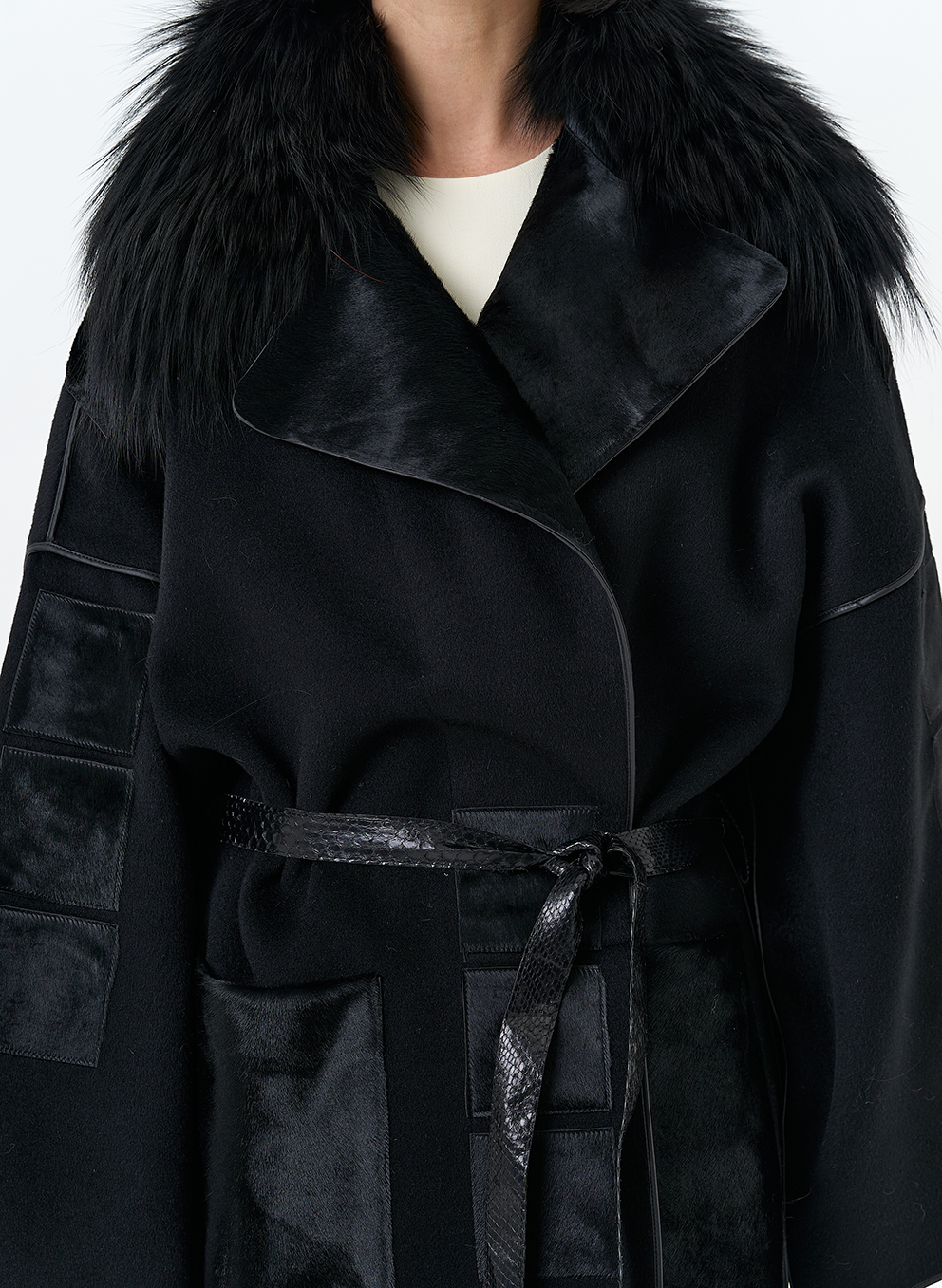 Отделка воротника - мех лисы, цвет черный; Cavallino