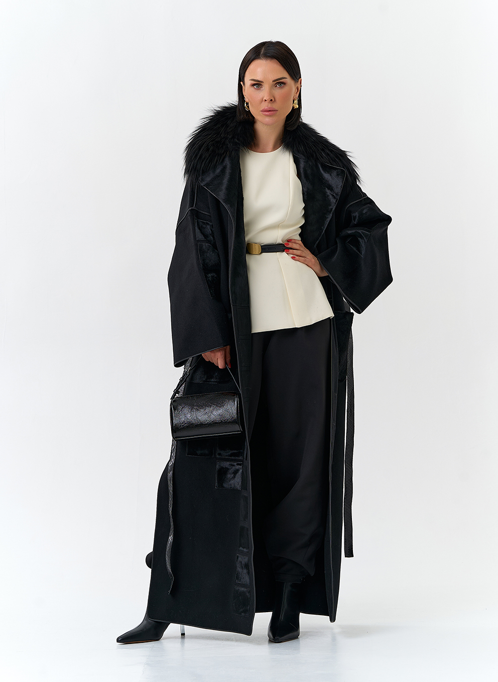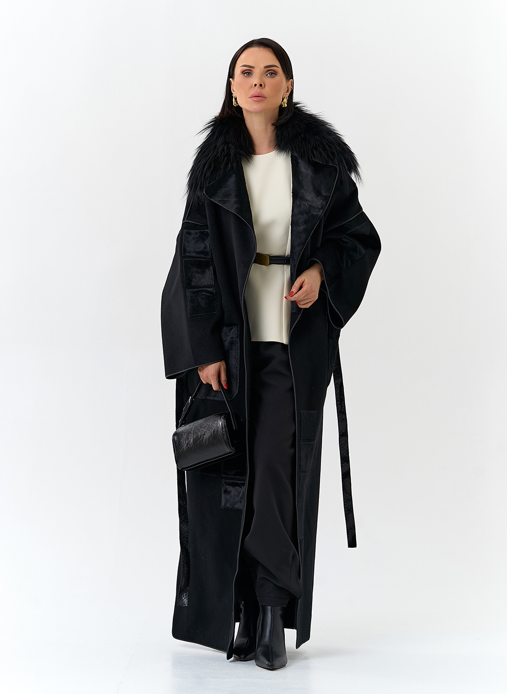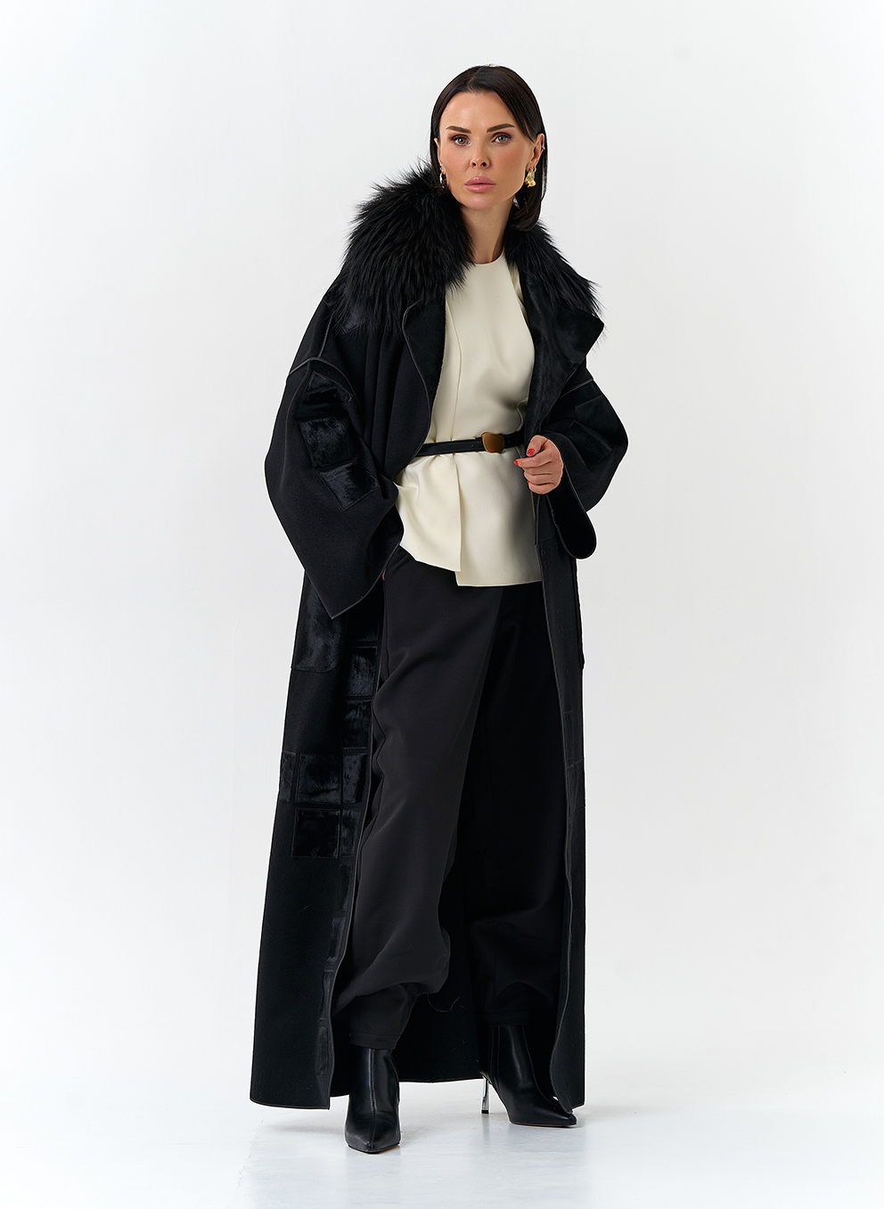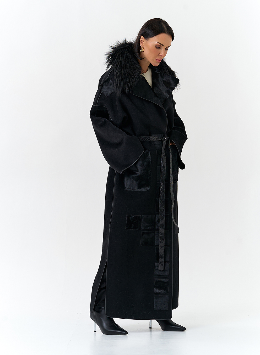 Отделка воротника - мех лисы, цвет черный; Cavallino
