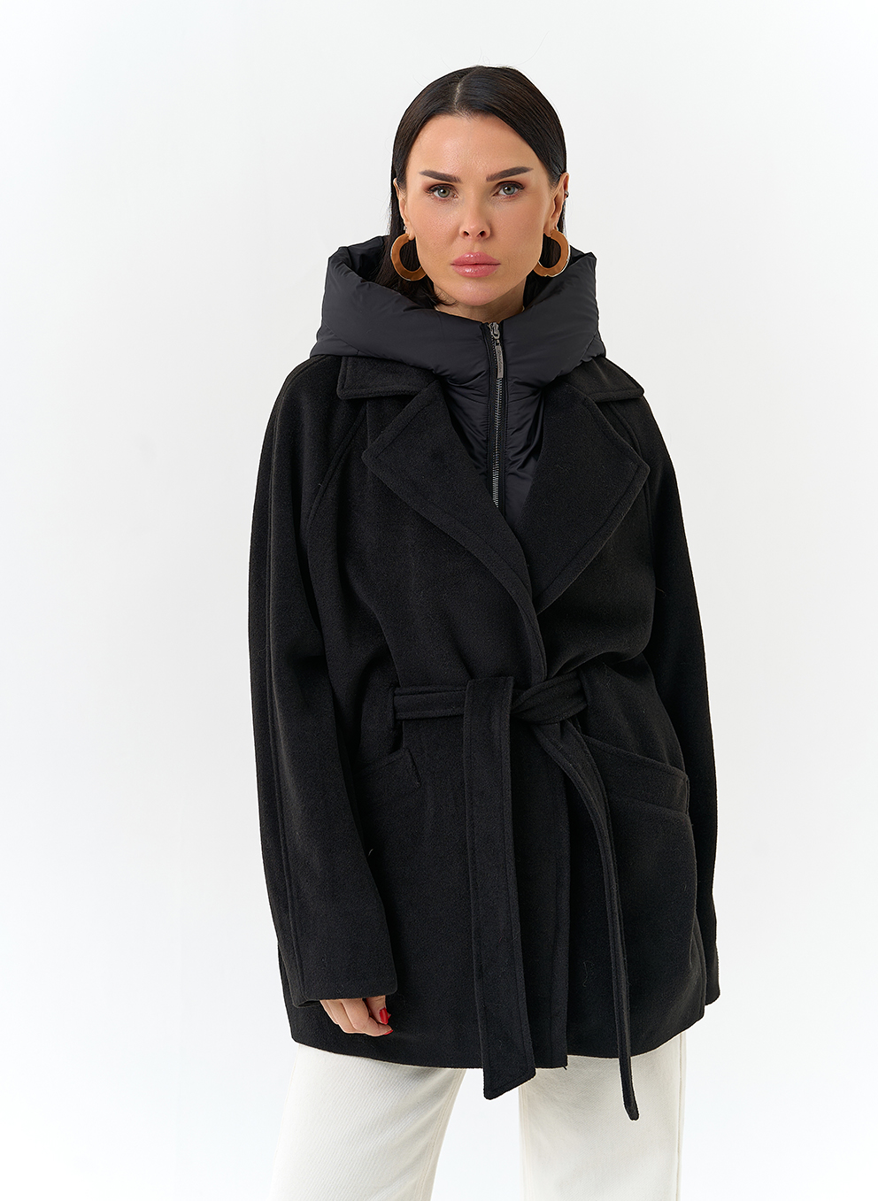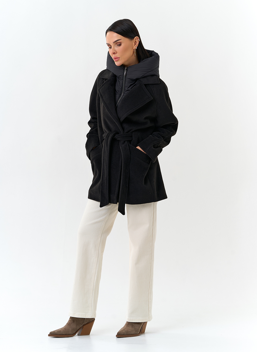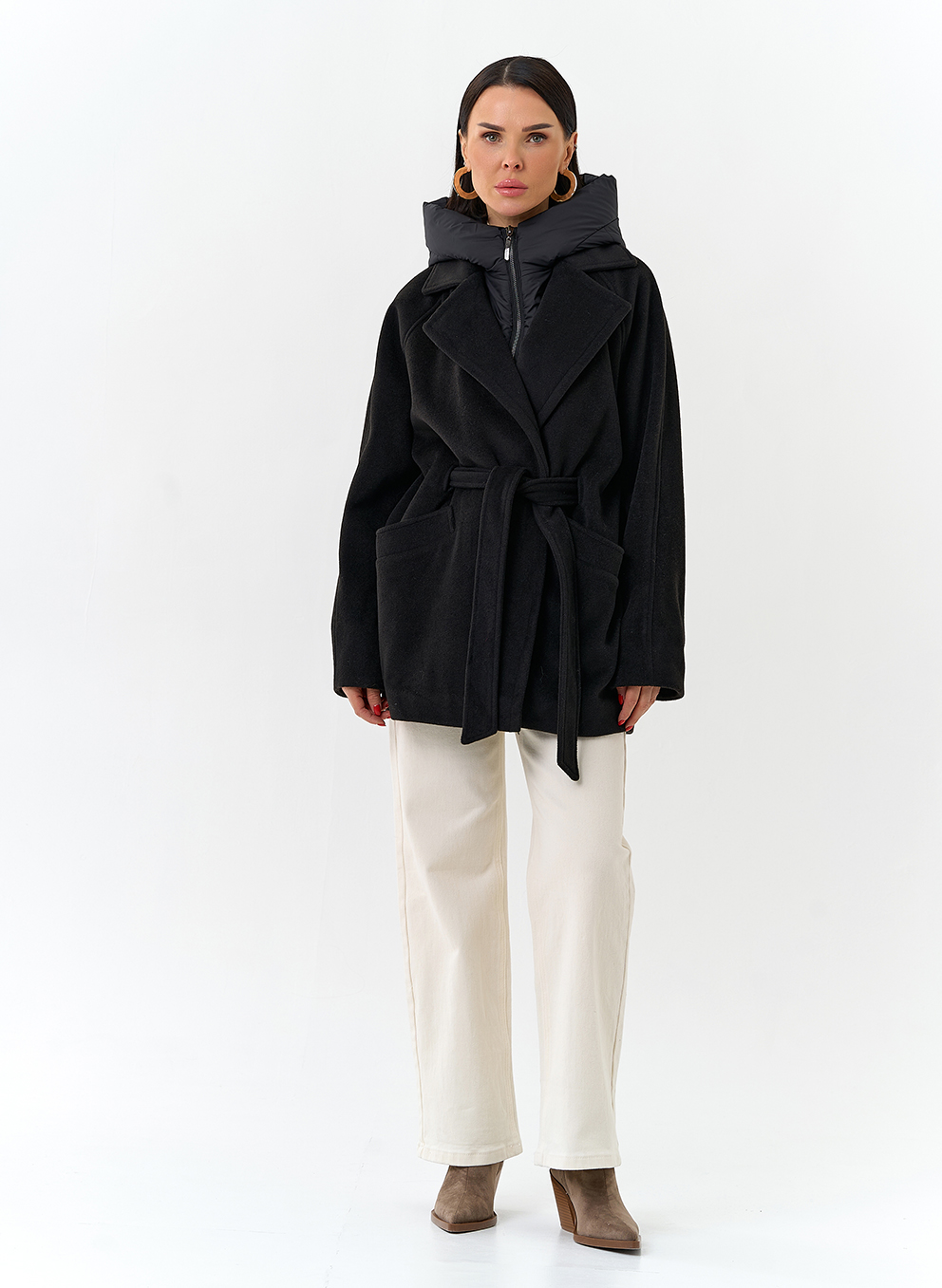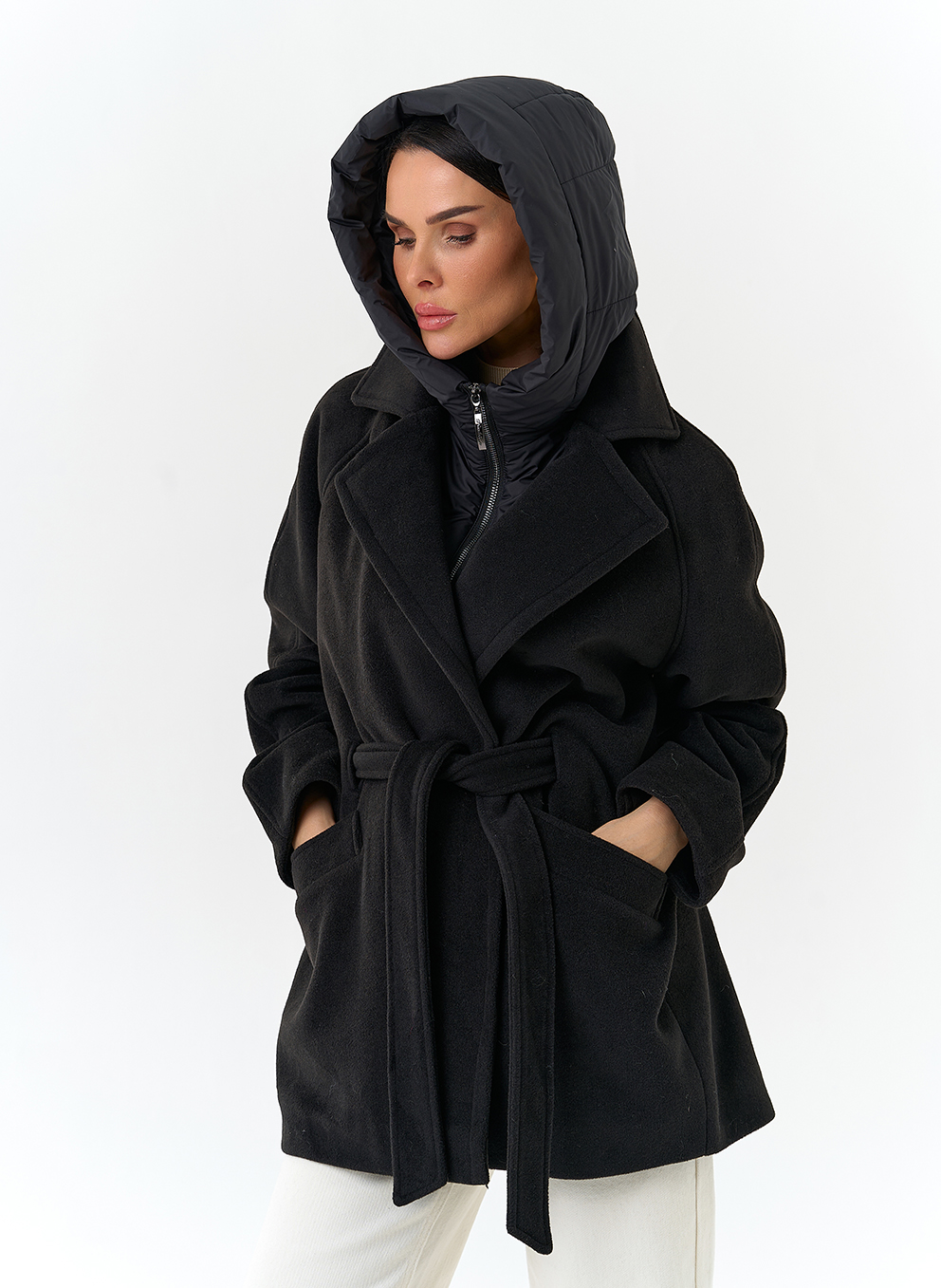 Крой воротника - съемный капюшон, английский воротник
