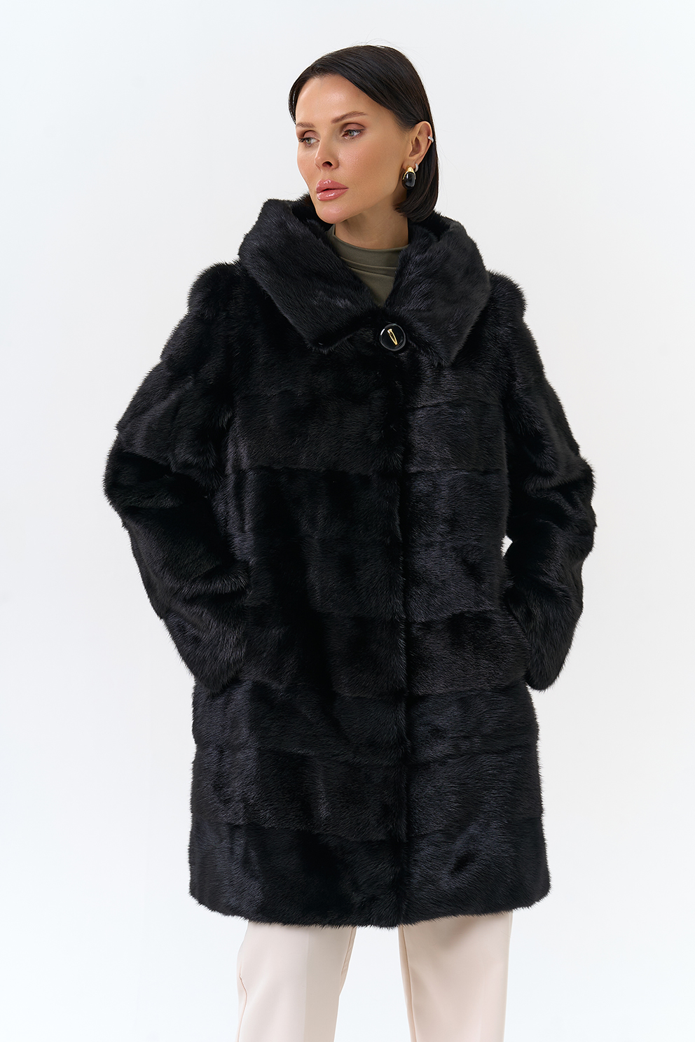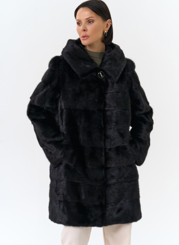 Шуба поперечной раскладки в черном цвете из меха норки.