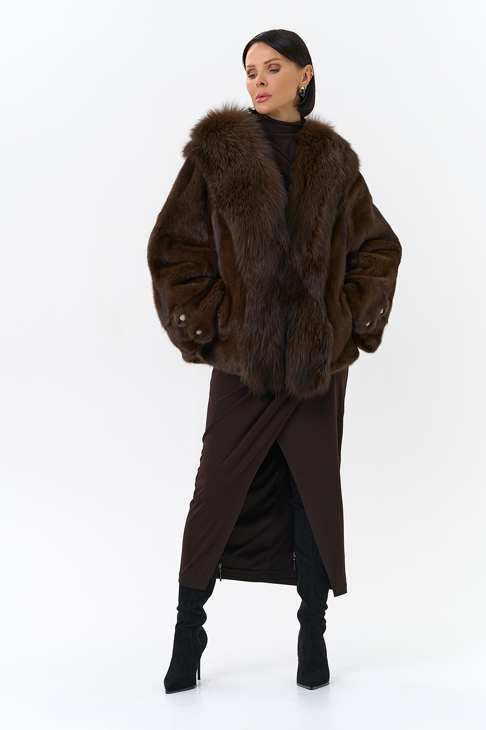 Тип ворота - V- образный, отделка чернобурка